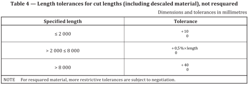 图5----ISO16160-2012标准中关于连轧钢板长度允许偏差的规定