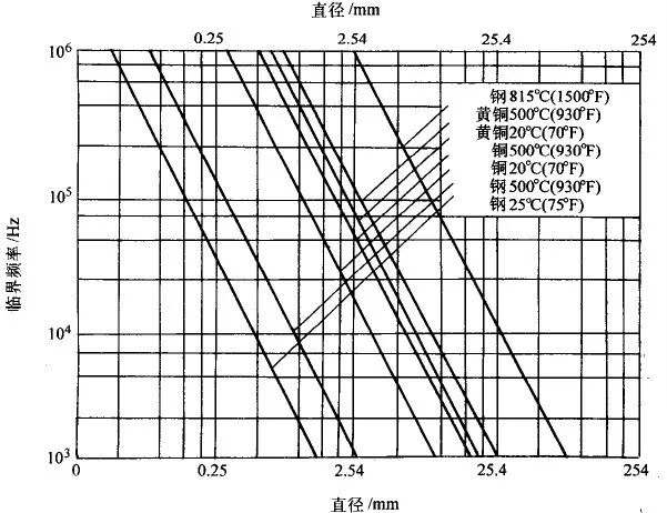 ▲图1 几种材料有效加热临界频率与工件尺寸的关系
