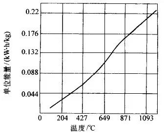 ▲图2 工件感应透热加热温度与单重所需能耗