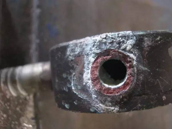 水垢产生部位主要在感应电源电器元件的冷却的内壁、变压器冷却铜管的内壁,感应器铜管的内壁等,如图1、图2、图3所示。水垢得产生直接降低电源冷却效果,使电器元件的寿命降低,同时造成电源有效输出功率的降低。