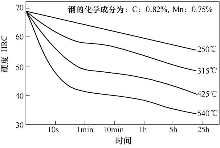 由图1可以发现,无论是低温、中温、高温回火,硬度的变化都是在极短时间内完成的,时间越长变化越缓慢,高温快速回火正是根据这一现象提出的。