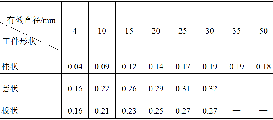 表4 45钢制工件在800℃盐浴中快速回火形状尺寸系数