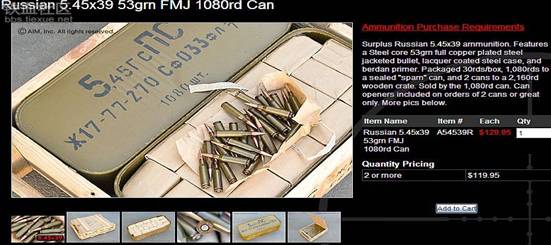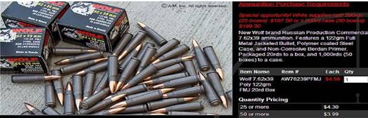 俄罗斯产钢壳7.62x39毫米突击步枪子弹