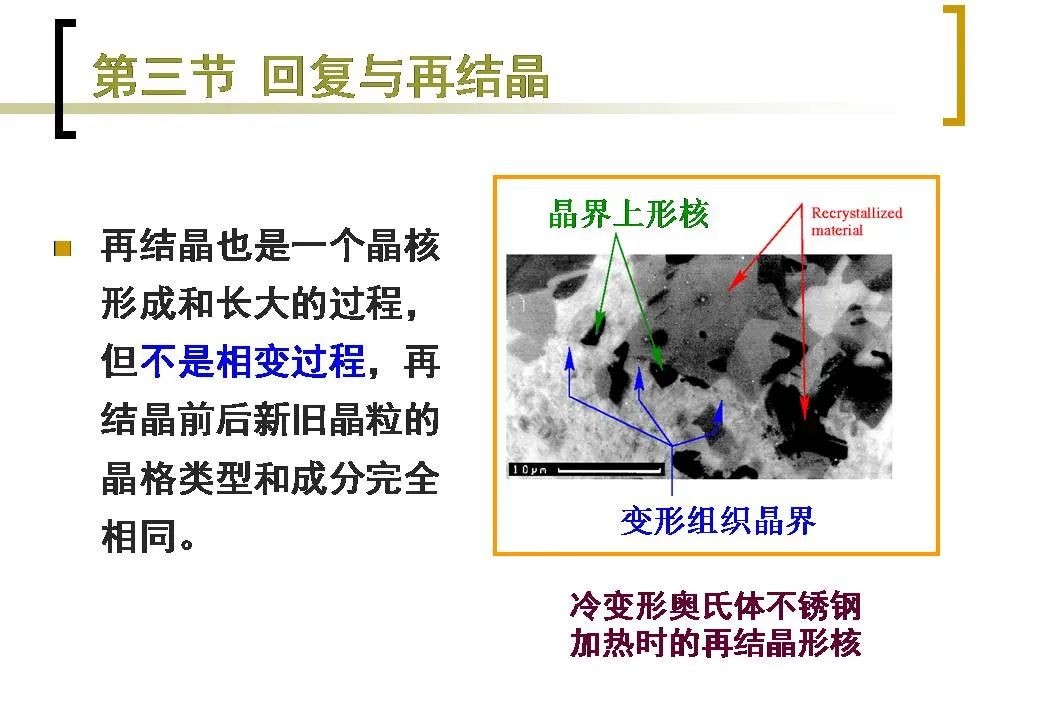 因为通过压力加工时的塑性变形,金属的组织也会发生很大的变化,可使某些性能如强度等得到显著的提高。但在塑性变形的同时,也会给金属的组织和性能带来某些不利的影响,因此在压力加工之后或在其加工的过程中,还应经常对金属进行加热,使其发生回复与再结晶,以消除不利的影响。工程上实际材料均为多晶体组织,为了更好地了解多晶体材料的变形,首先了解单晶体的变形特性。引用自:金属材料的变形与再结晶。