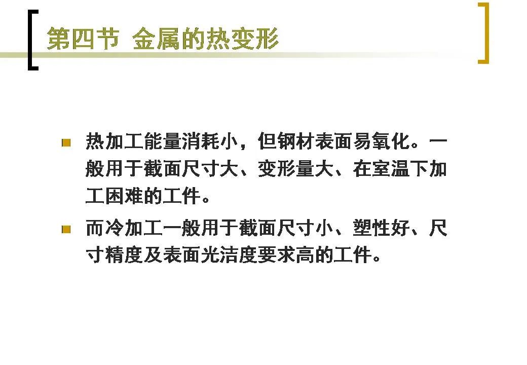 (1)由于铸态金属中往往具有晶粒粗大不均匀、组织不致密及杂质偏析等缺陷,故工业上的金属材料大多要在浇注后经过压力加工再予使用。