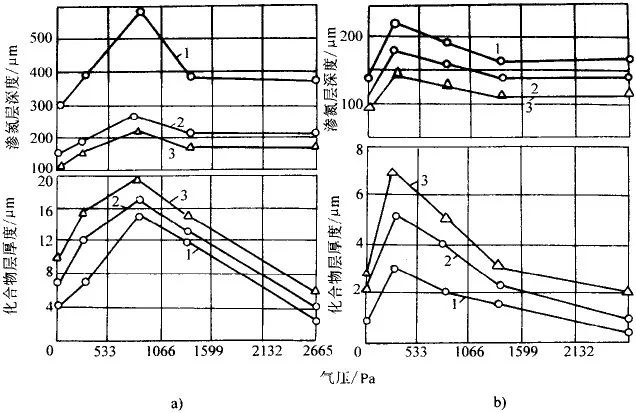 ▲图17 炉气压力对40Cr离子渗氮化合物层的影响