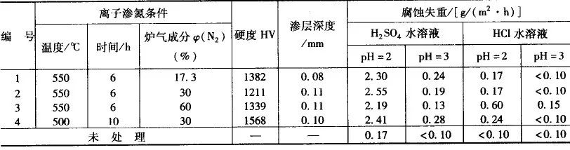 ▼表8 1Cr18Ni9 离子渗氮后的耐腐蚀性