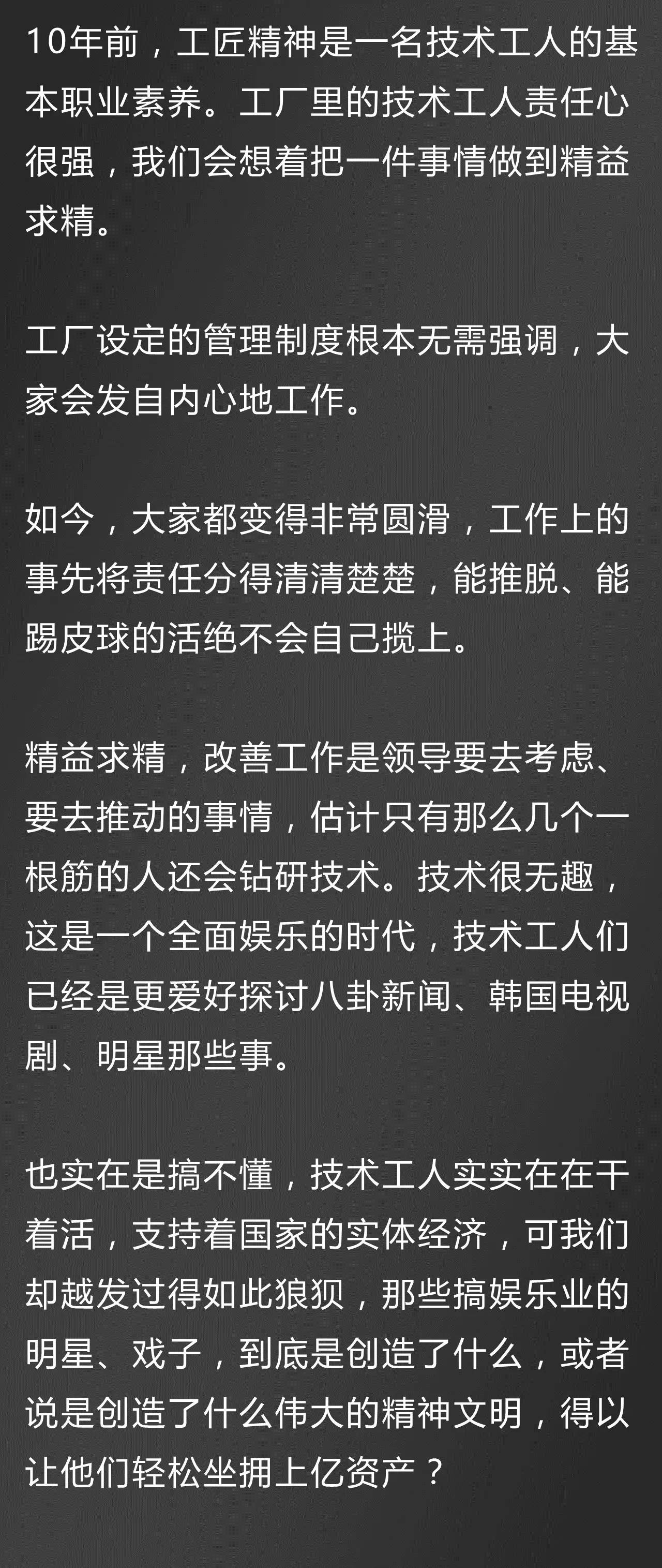如今,我们看到了政府提出的“中国制造2025”,“弘扬工匠精神”,看到了央视开始报道制造业,这些都让我们制造业人看到了新的曙光。