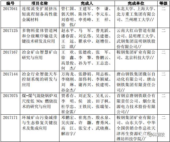2017年冶金科学技术奖推荐获奖项目(82 项)
