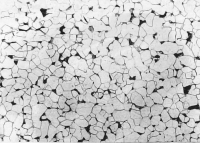 | 图号:10-01 浸蚀剂:4%硝酸酒精 材料及状态:10钢 处理:退火处理 组织及说明:白色晶粒为铁素体,黑色块状为片状珠光体(体积分数约占10%)。铁素体晶粒细小,且分布 |