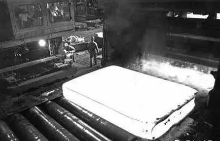 这张照片就是经过“初轧开坯机”轧制出来的板坯,初轧机的轧辊直径在1150㎜,只有这样粗的轧辊才能碾压出300~500㎜厚度的大型板坯。大型“初轧机”是重要的钢铁工业生产装备,没有它的存在就不能生产高档钢材,而全世界可以制造初轧机的国家没有几个!