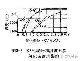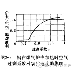 2)炉气成分的影响,如图2-3.2-4所示,当炉内空气过剩系数越大氧化越严重。当炉内过剩系数为0.4-0.5时可以形成保护气氛避免发生氧化。