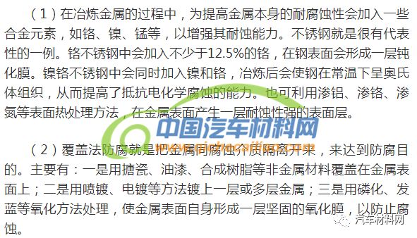 汽车金属的腐蚀及防腐方法