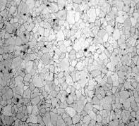 显微组织:F+Fe3CⅢ,铁素体(F)是呈亮白色的等轴状晶纯铁的基体组织,主要为白色。铁素体,晶粒均匀分布(6级),图中黑色细条为晶界腐蚀线。