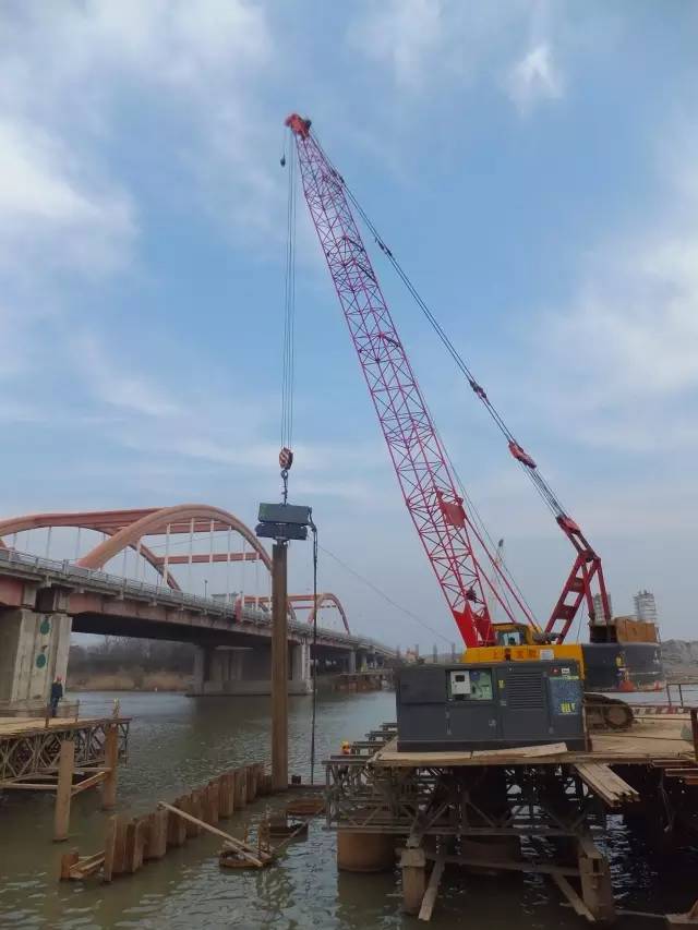 河里的防水围堰。通常选用更宽点的6号桩。锁口钢板桩的长度在15到24米之间,由416L型液压振动锤驱打。更复杂的可能含有砾石的土壤,可以选择中等大小的锤,如815C。围堰能为混凝土基础的修建提供干燥的码头。桥塔建成之后,钢板桩会被取出重新利用。需要避免使用泥浆和隔水墙的深基础。有时候钢板桩会与护筒桩配合使用,以获得更大的侧向承载力。这些应用需要AZ 型钢板桩,长度为24 -36米。对于挖掘深度达到20米的情况,这些宽的钢板桩很经济,能提供很大的侧向承载力。中等大小的815C或更大的1412C常被选来完成这些环保建设项目。