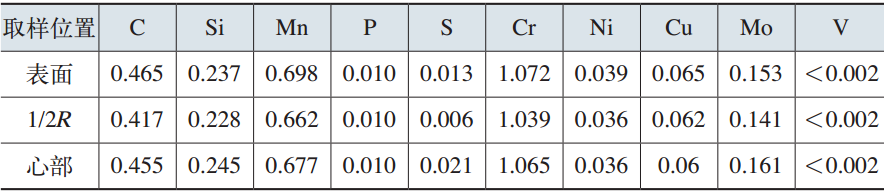 表2 锻坯调质后成品化学成分(质量分数) (%)