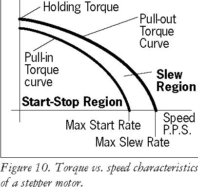 The pull-in characteristics vary also depending on the load. The larger the load inertia the smaller the pull-in area. We can see from the shape of the curve that the step rate affects the torque output capability of stepper motor The decreasing torque output as the speed increases is caused by the fact that at high speeds the inductance of the motor is the dominant circuit element.