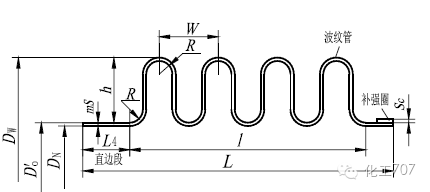 U 形膨胀节主要由波形管、直边段两部分组成,需要时还可能设内衬筒,加强环等,见图所示: