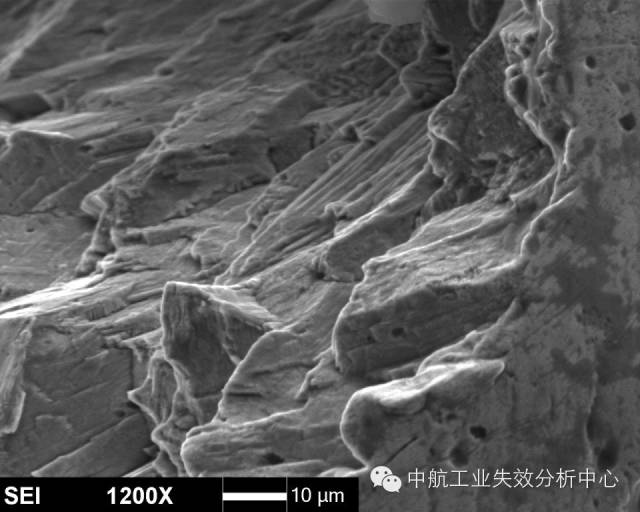 有的起源也不仅仅在一处位置起源,可能在多个位置均萌生疲劳源,这时我们就可以看到多个疲劳源之间产生类似台阶的特征,这是由于多处萌生裂纹并扩展过程中,不可能在一个平面上扩展,当裂纹相互交汇到一起时,必然通过剪切撕裂的方式使不同的扩展平面连接起来,从而形成台阶。