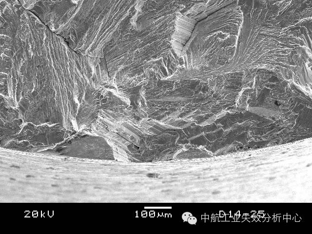 这类的源区附近断面由于交错分布多个解理面,因此比较粗糙,之后的疲劳扩展前、中期则会转为平坦,最后失稳后的快速扩展又重新变得起伏大和粗糙。此外,有些疲劳并不一定从试样表面起源,有可能在试样内部,此时往往可能由于内部存在缺陷或亚表面处于特殊应力状态导致。