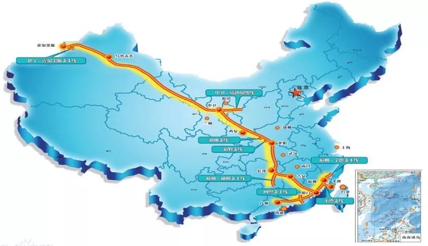 西一线干线起自新疆维吾尔自治区(简称新疆)轮南镇,止于上海市白鹤镇,长3839km,管径1016mm,设计压力10MPa,设计输量170亿m3/a。2003年10月东段建成投产,2004年12月西段建成投产。西气东输二线天然气管道(简称西二线)包括1条干线、8条支线。干线起自新疆霍尔果斯市,止于广东省广州市,长4918km,管径1219mm,设计压力12MPa,设计输量300亿m3/a。支线长约3760km。2012年底全线投产。西三线包括1条干线和8条支线。干线西起新疆霍尔果斯市,终于福建省福州市,全长5220km,管径1219mm,设计压力12MPa,设计输量300亿m3/a。该管道西段(霍尔果斯—中卫)、东段(吉安—福州)已建成投产。