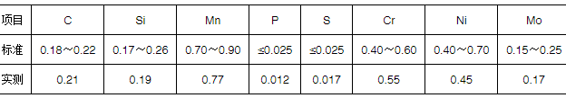 在轴上取样,进行钢材化学成分分析,结果见表1。由表1可见,各元素含量正常,均符合技术要求。