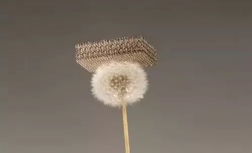 因为它其中的金属微点阵是由相互连接的空心支柱组成;每支柱的直径~100μm,壁后100nm,全部结构的99.99%为空气;表观密度为0.9g/cm3,是一种合成的多孔极轻3D开放式蜂窝聚合物结构金属材料。这种创新材料比泡沫塑料还要轻100倍,和骨骼的构造差不多(骨骼的外部非常坚硬,但是其内部实际上大部分都是蜂窝状空心结构)。因此它们很不容易折断而且重量非常小。