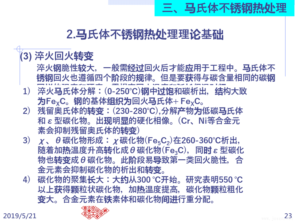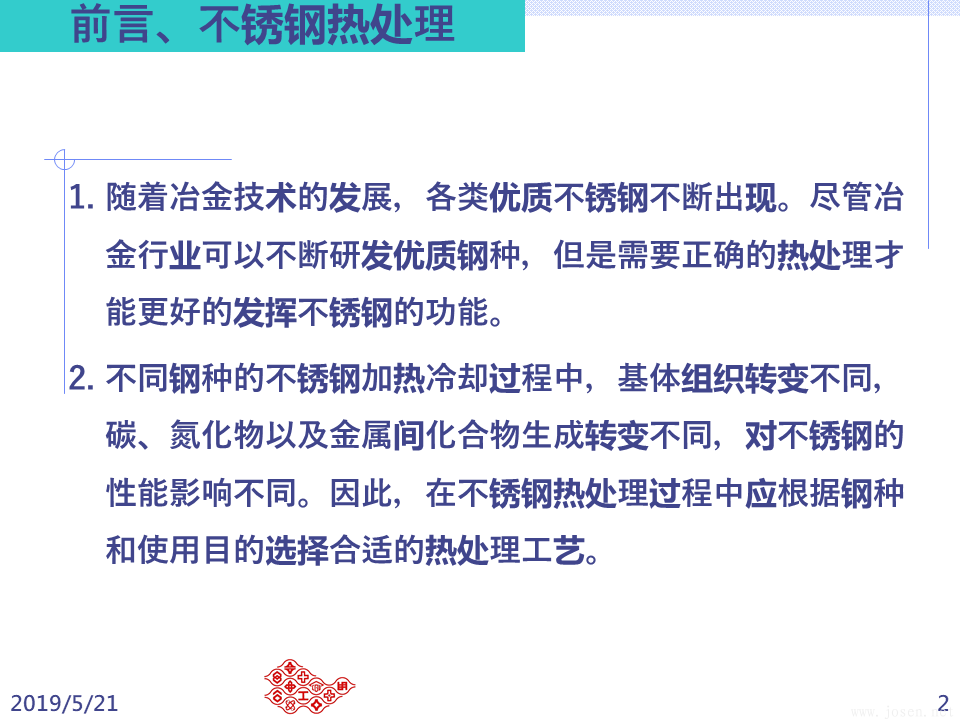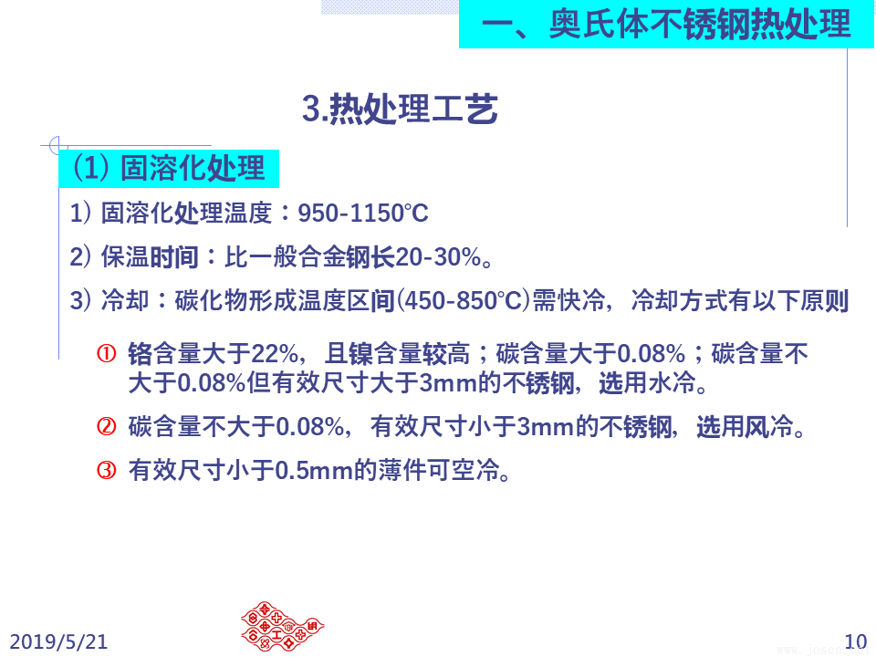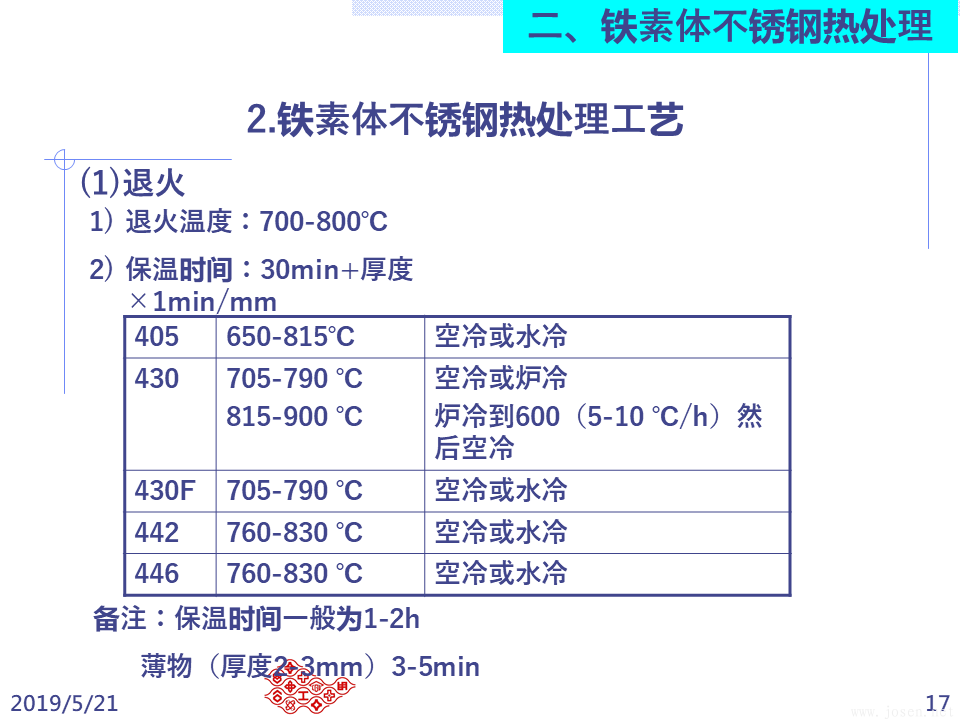 不锈钢之热处理: 随着冶金技术的发展,各类优质不锈钢不断出现。尽管冶金行业可以不断研发优质钢种,但是需要正确的热处理才能更好的发挥不锈钢的功能。不同钢种的不锈钢加热冷却过程中,基体组织转变不同,碳、氮化物以及金属间化合物生成转变不同,对不锈钢的性能影响不同。因此,在不锈钢热处理过程中应根据钢种和使用目的选择合适的热处理工艺。