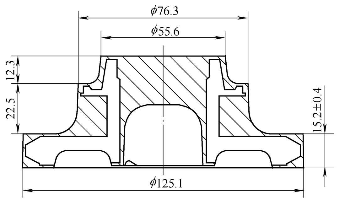 锻件为倒档齿轮,形状如图1所示,锻件重量为1.9kg,硬度要求为149~170HBW(dB=4.60~4.90),材料为TL4227,具体化学成分见附表。