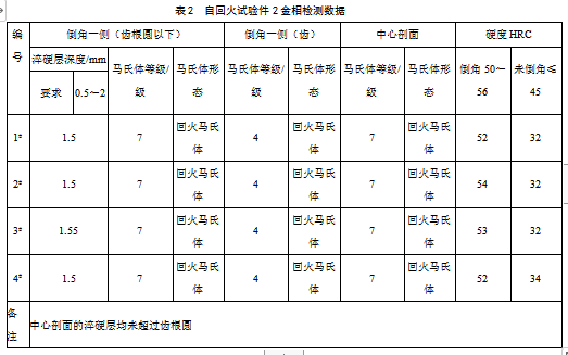 在齿圈淬火处理时根据供应形式的不同,可以通过淬火机床程序设定相应工艺参数完成自回火处理,还可以利用淬火余热实现齿圈与飞轮件的热装,减少整机厂齿圈热装工序二次加热带来的能源浪费,双方实现经济效益最大化;同时减小齿圈二次(重复)加热导致硬度降低退火的风险。