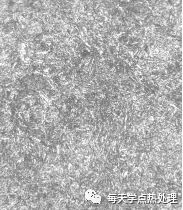 如图所示45钢840℃水淬后的组织,在白色淬火马氏体的基体上分布着深色中碳马氏体;如果背景变深,但板条形态还清晰可见,则为回火马氏体。
