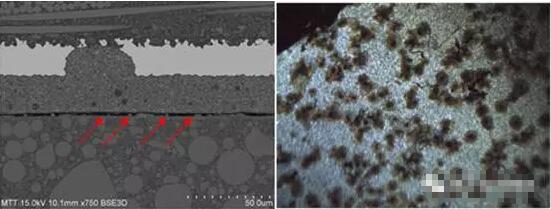 图9 左IC分层失效 、右涂层样品界面点腐蚀失效