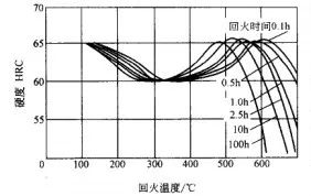 形状简单的一般高速钢工件可以采用两次回火,形状复杂的大型工件需要三次甚至四次回火。贝氏体等温淬火高速钢由于淬火后残留奥氏体量较多,可以适当增加回火次数。