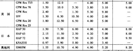 目前粉末高速钢的生产厂家主要在瑞典、美国、日本、奥地利等国。其生产的粉末高速钢牌号和化学成分如表7所示。