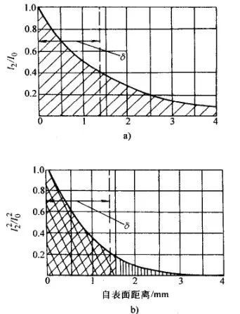 I0-表面涡流强度 I2-距表面 x 处的涡流强度