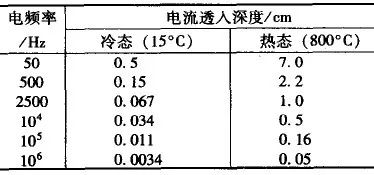 ▼表3 不同频率电流在45钢中的透入深度