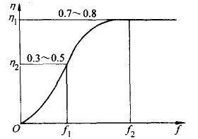 (1)对于一定尺寸的工件和感应器来说,所选择的电流频率不应低于某一数值f1,否则工件只能加热到失磁点左右的温度,见图9 。