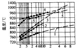 由图可见,在加热温度相同的的条件下加热速度越高,奥氏体的稳定性就越差。这是由于加热速度越高,加热时间越短,形成的奥氏体晶粒越小,且成分不均匀。提高加热温度,奥氏体的稳定性将会增加。