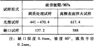 如果工件表面有缺口,采用表面淬火几乎可以完全消除缺口对疲劳性能的有害影响(见表7)。