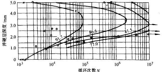 在采用正确的表面淬火工艺获得合理的硬化层分布时,可以显提高工件的抗疲劳性能。