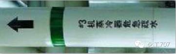 在钢管管道上以带箭头的长方形识别色标牌标识;