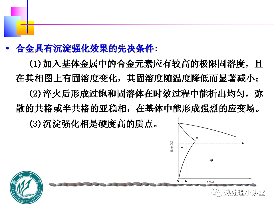 ①溶质元素在固溶体中应具有一定的固溶度,并随温度下降而减小;
