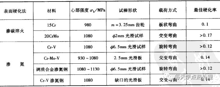 例如,渗碳或碳氮共渗齿轮,最佳硬化率为0.1~0.15。渗碳淬火和渗氮的最佳硬化率如表1所示。