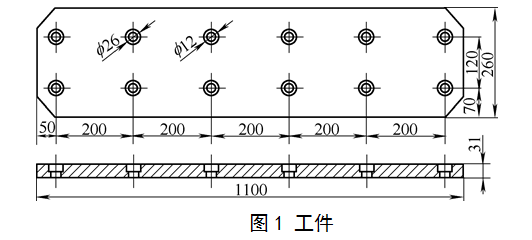 我厂为宝钢5m轧机生产的滑板,材质为20CrMnTi,尺寸如图1所示。