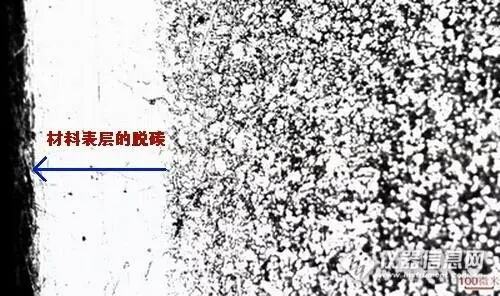 脱碳是一种常见的现象,钢中的碳与空气中的氧、二氧化碳和氢气反应,产生一氧化碳或甲烷,导致表层金属中的碳逃逸,这就减少了表层金属中的碳含量。这里需要注意一点,只有当碳氧化的速度小于表层金属氧化的速度,才会发生脱碳现象。