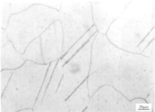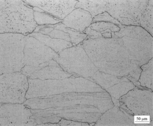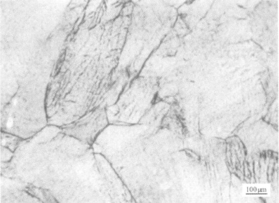 图3-2 Ti40合金600℃退火组织:弯曲状β晶界+少量加工流线