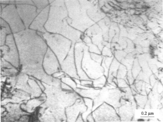 图3-9 Ti40合金蠕变后形成的位错形貌(TEM)