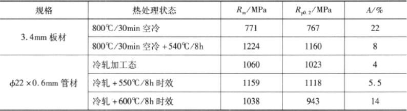 表3-4 Ti-15-3合金板材及管材的典型性能