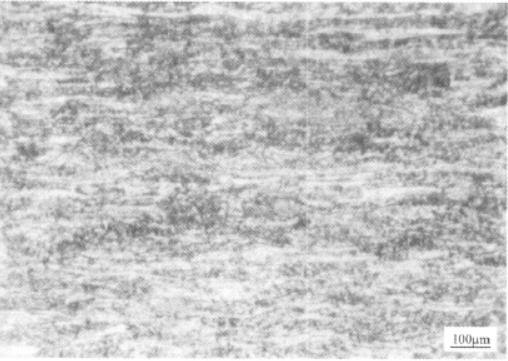 图4-16 Ni47Ti44Ta9合金轧制加工态,为拉长的条状组织