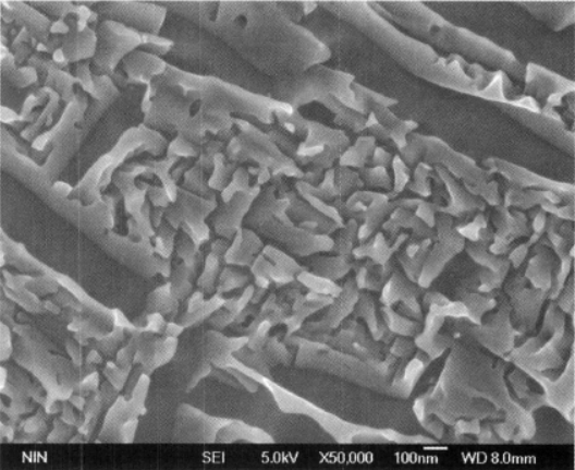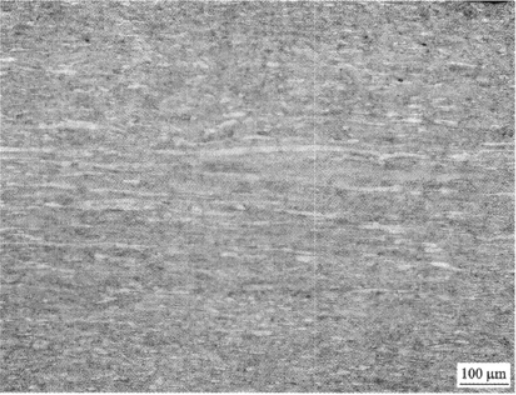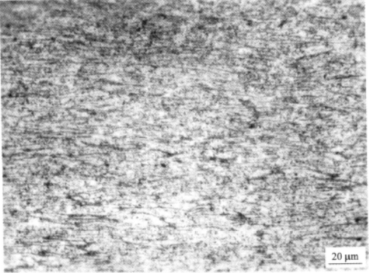 图4-15 Ti44Ni47Nb9合金轧制加工态,为拉长的条状组织